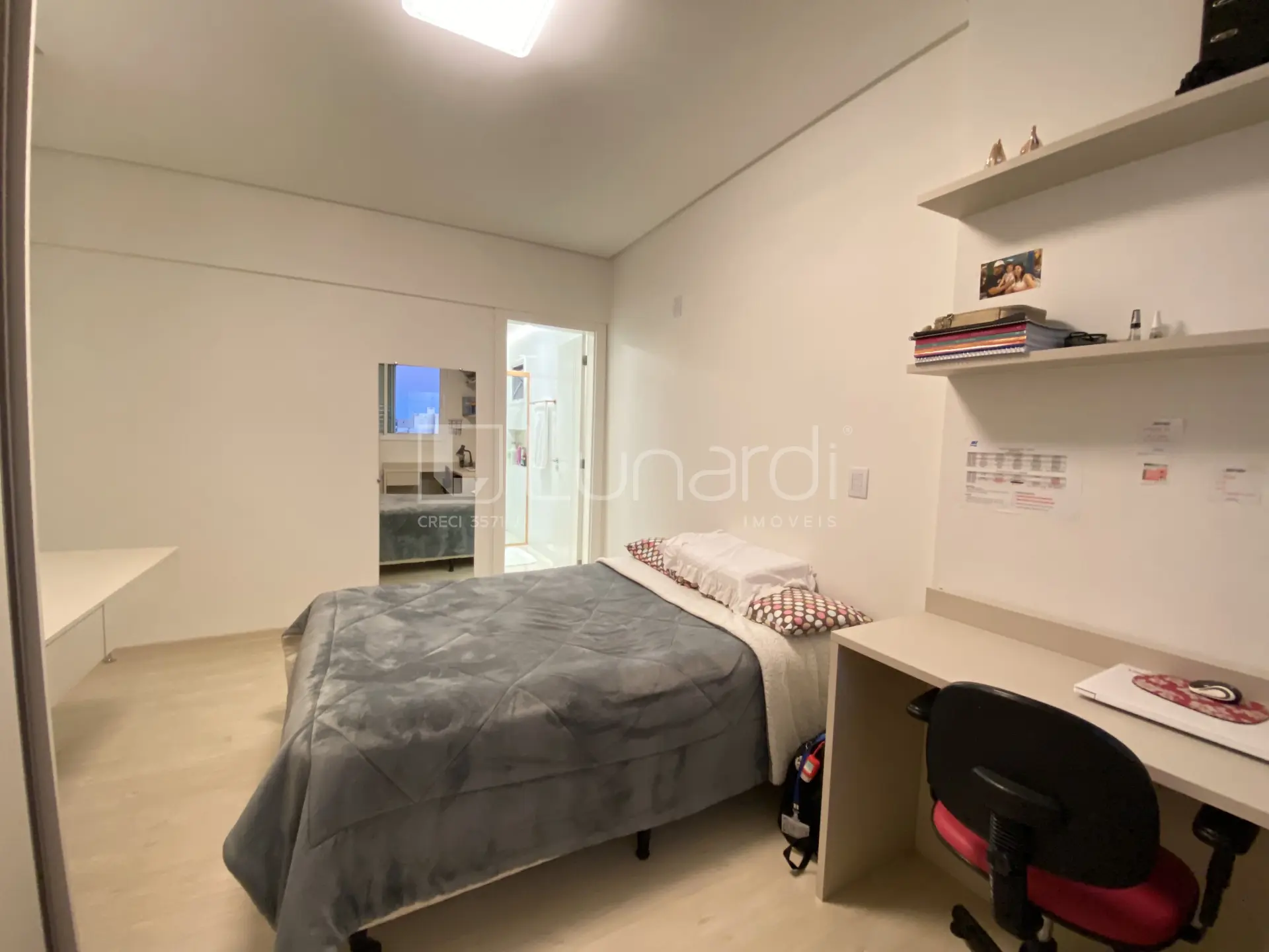 Com 3 suítes e 2 vagas de garagem individuais, ele é perfeito para quem busca conforto e praticidade. Neste apartamento ficam os móveis sob medida.