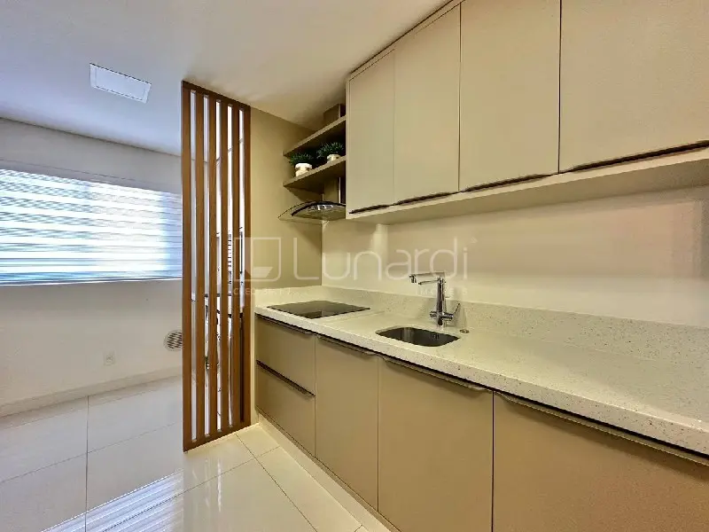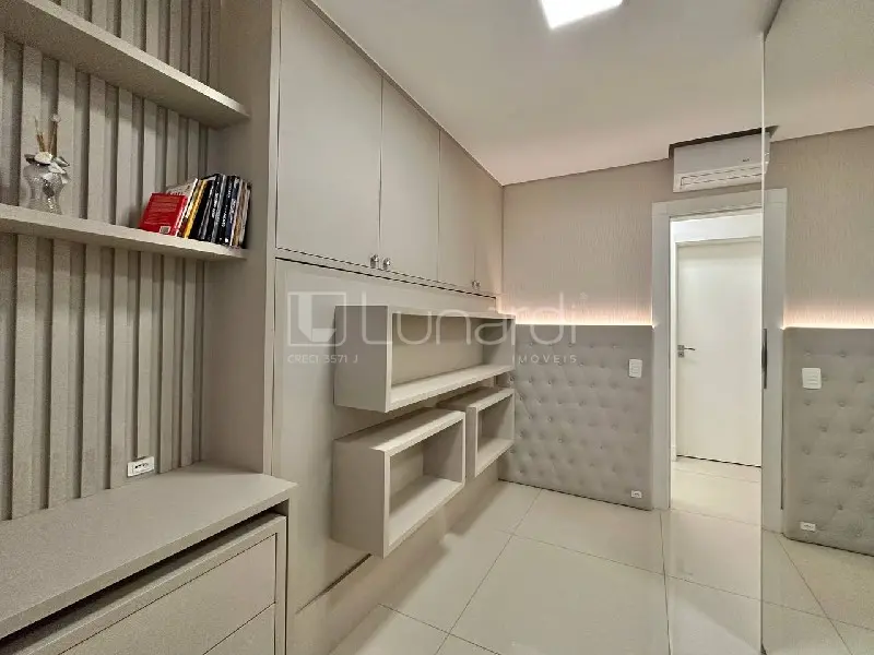 . Esse apartamento possui uma planta única, com salão de festas privativo e terraço com jacuzzi. Permanecem os móveis sob medidas. O edifício conta com academia, piscina, salão de festas, brinquedoteca e sala de jogos.