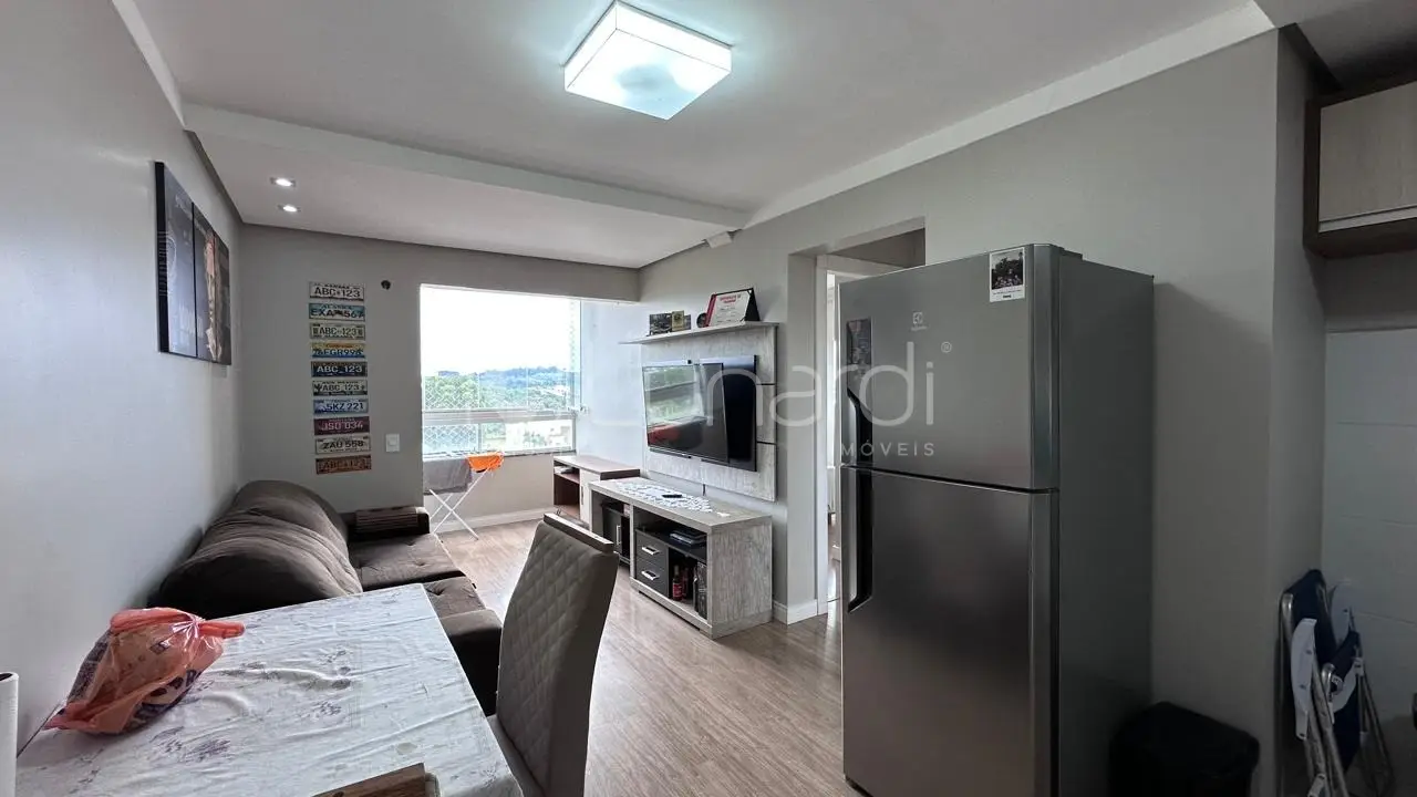 Apartamento semi mobiliado, localizado no Bairro Vila Real, o imóvel possui 2 dormitórios, sala e cozinha conjugados, 1 banheiro Social, 1 vaga de garagem coberta, Sacada fechada em Reiki com churrasqueira. Piso laminado em todos os cômodos do imóvel, exceto no banheiro. Posição solar Leste/Oeste com sol da manhã nos quartos e sacada a tarde, pegando sol o dia todo.