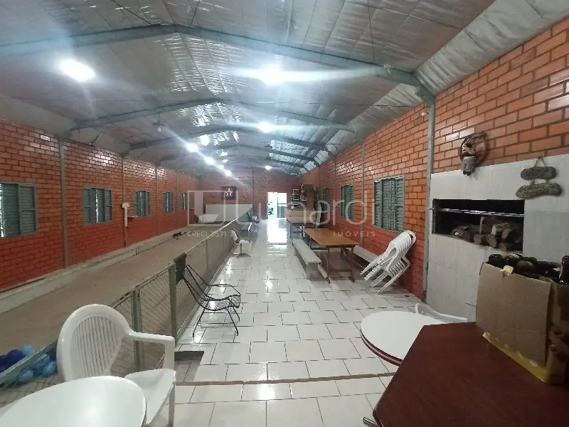 Possui 2 poços artesianos + 7 hectares plantação + casa chacreiro ( 60m ) + barracão festa com bocha + galinheiro + internet + telefone + frente de 215m para asfalto ( BR ) + casa ( 140m ) ( 3 dormitórios e 2 garagens ) .