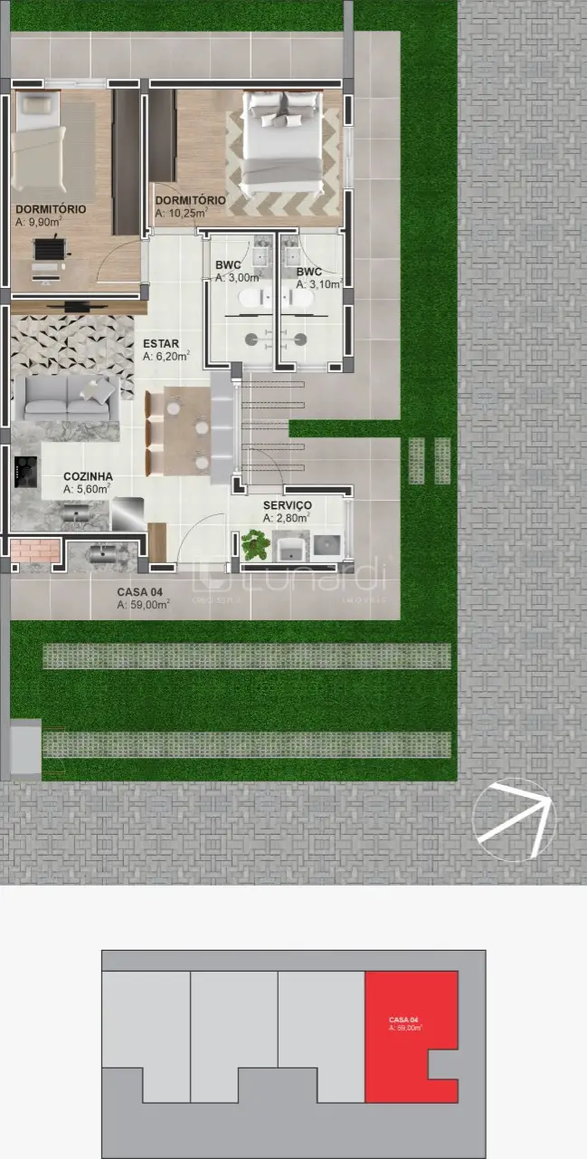 • Área Privativa: 59,00 m²