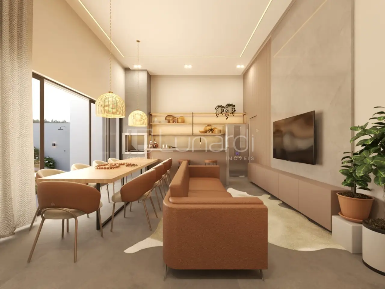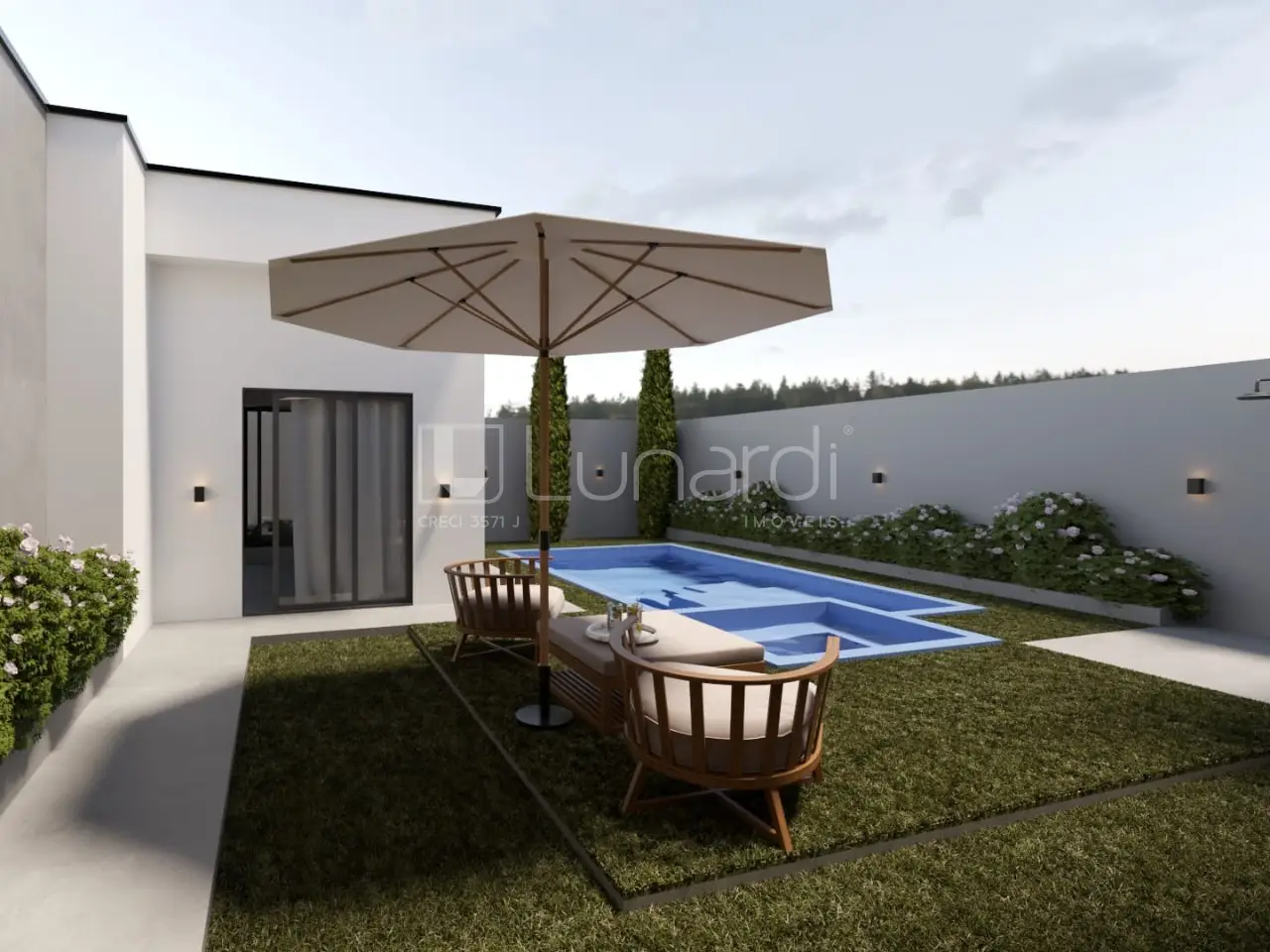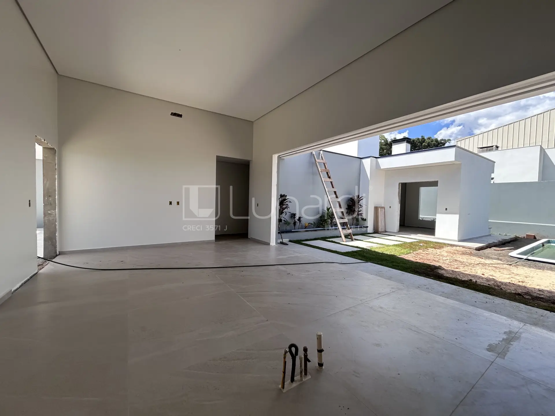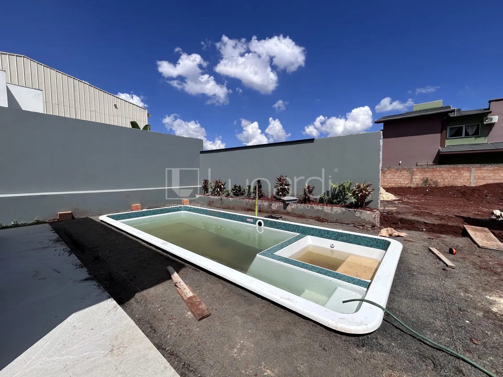 O imóvel conta com espaço gourmet, churrasqueira, piscina e quintal, ideal para aproveitar momentos em família.