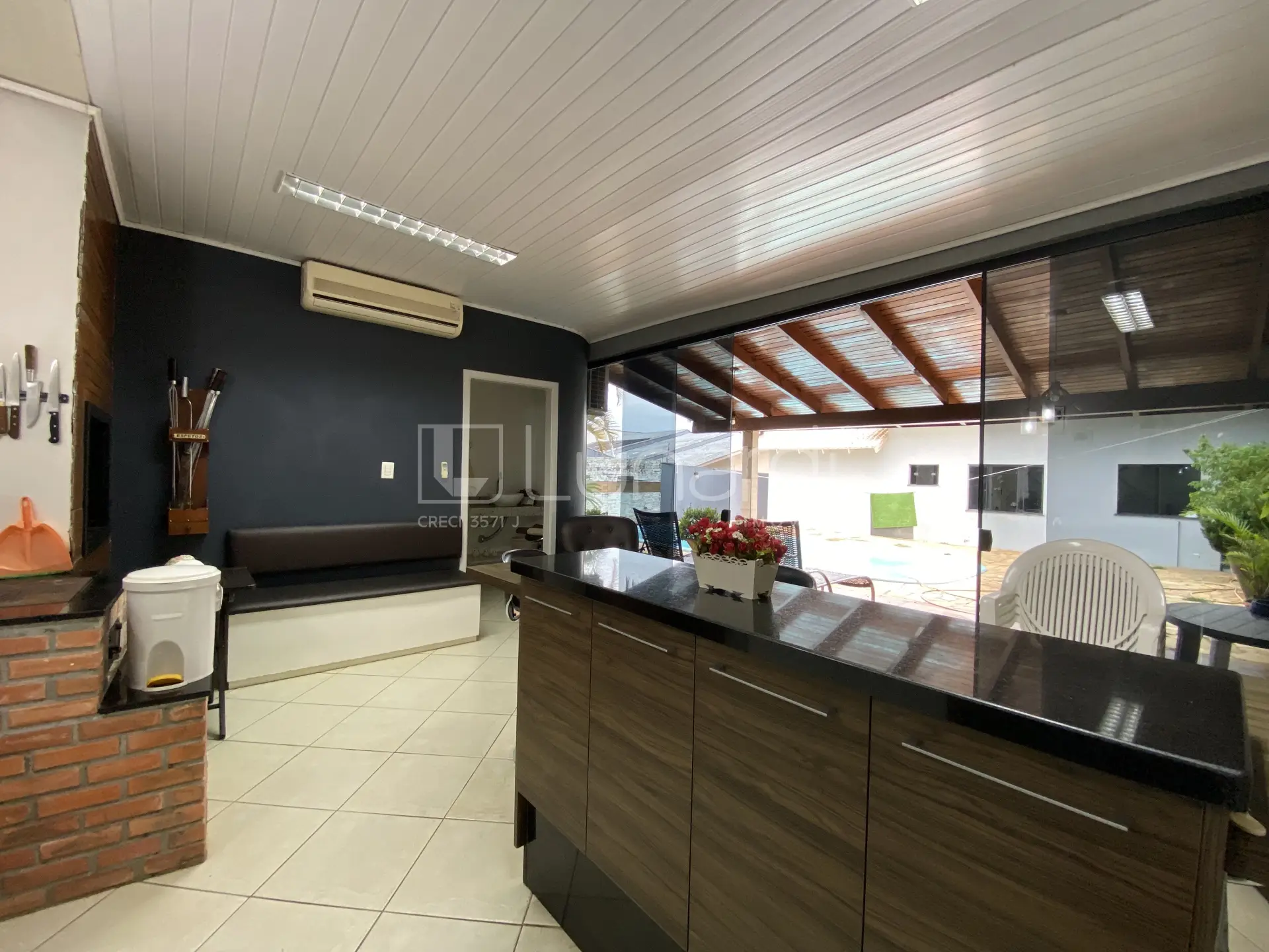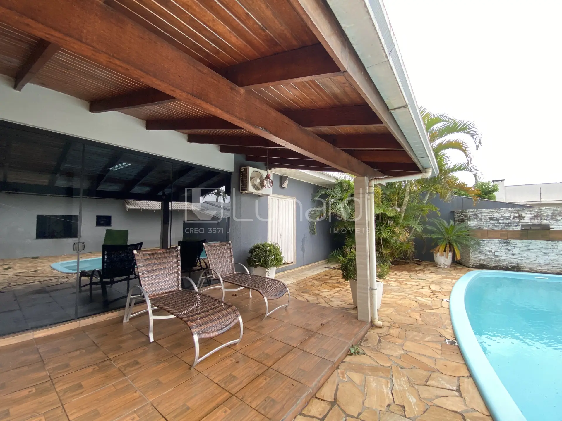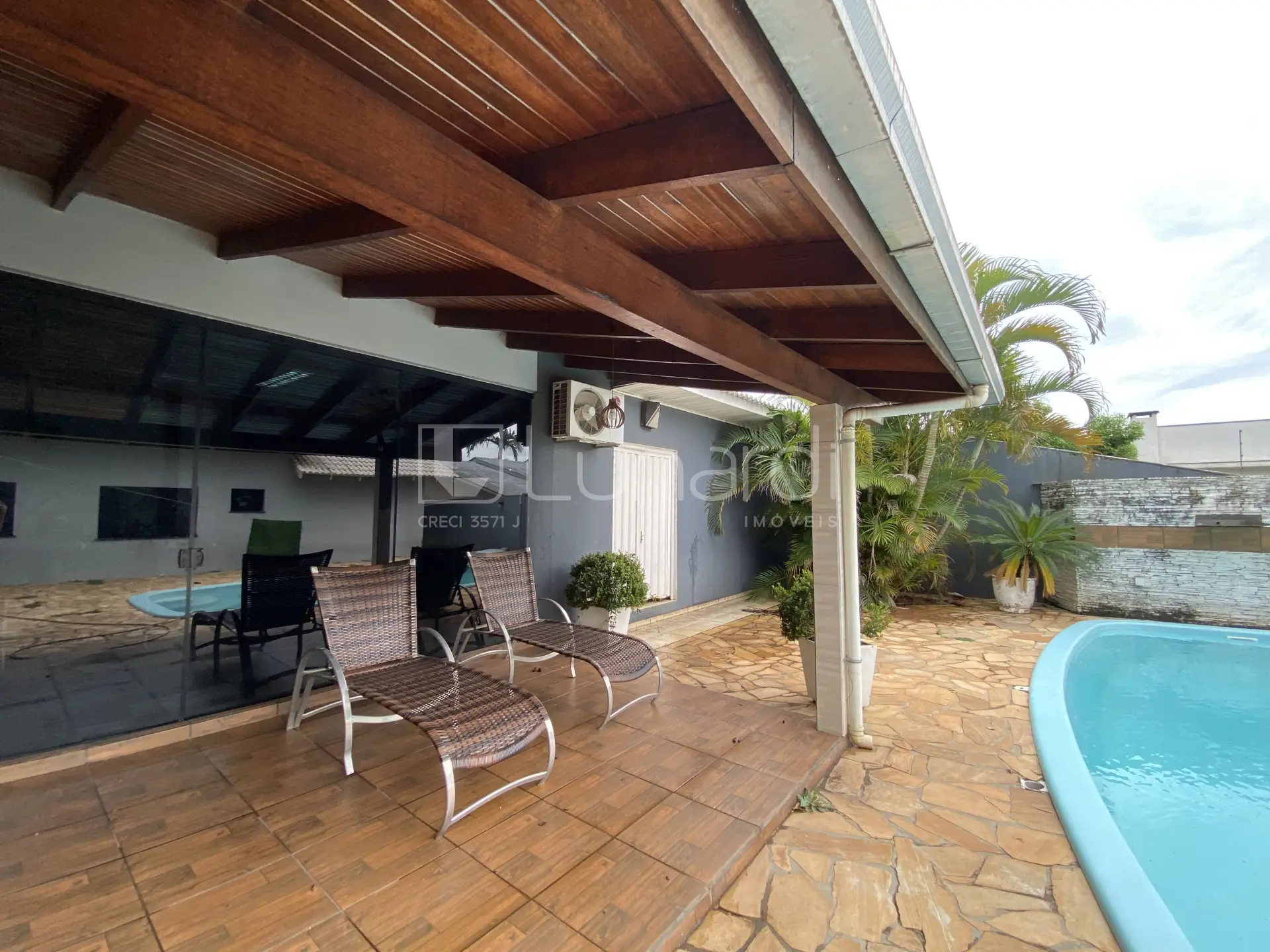 Aproveite os momentos de lazer em sua piscina aquecida ou relaxe no quintal, nos fundos da casa possui um amplo salão de festas mobiliado com banheiro.