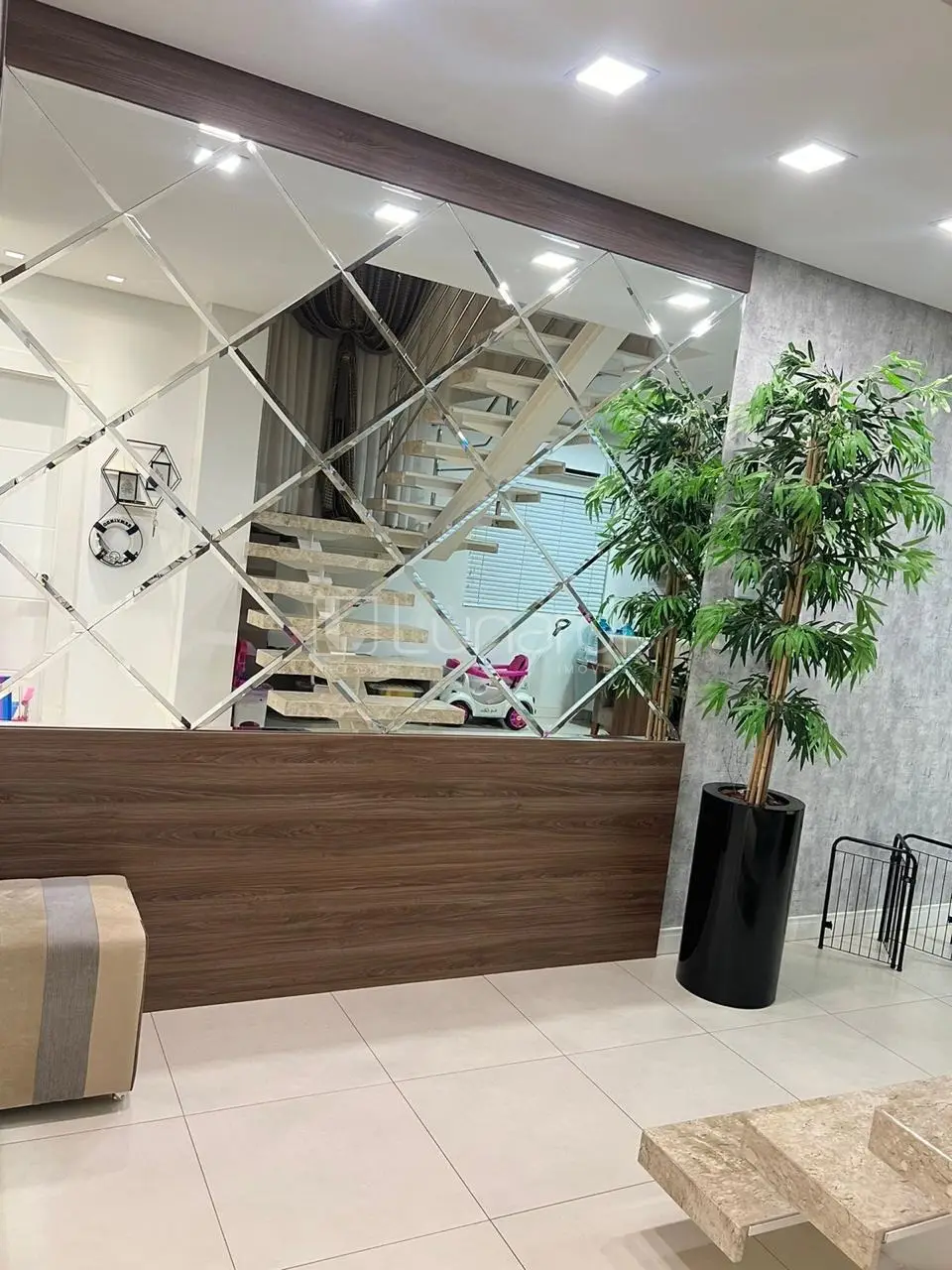 Com 160 m² de área privativa e 180 m² de área tota de terreno, este imóvel conta com 3 dormitórios, sendo 2 demi suites, e 1 banheiro social + 1 lavabo.
