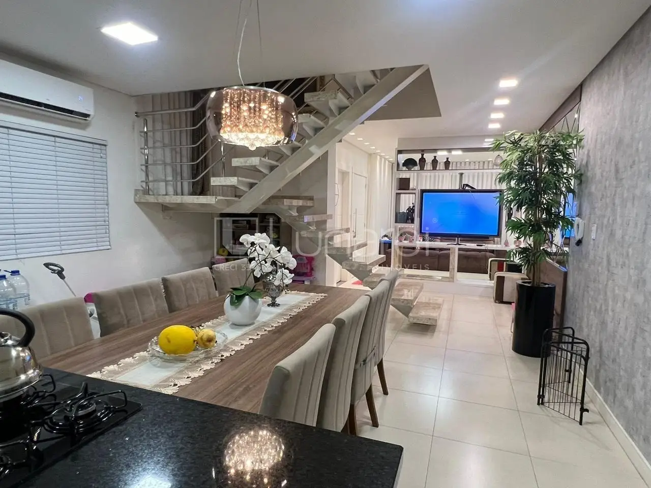 O sobrado possui também quintal, sala de jantar, sala de TV e cozinha planejada.